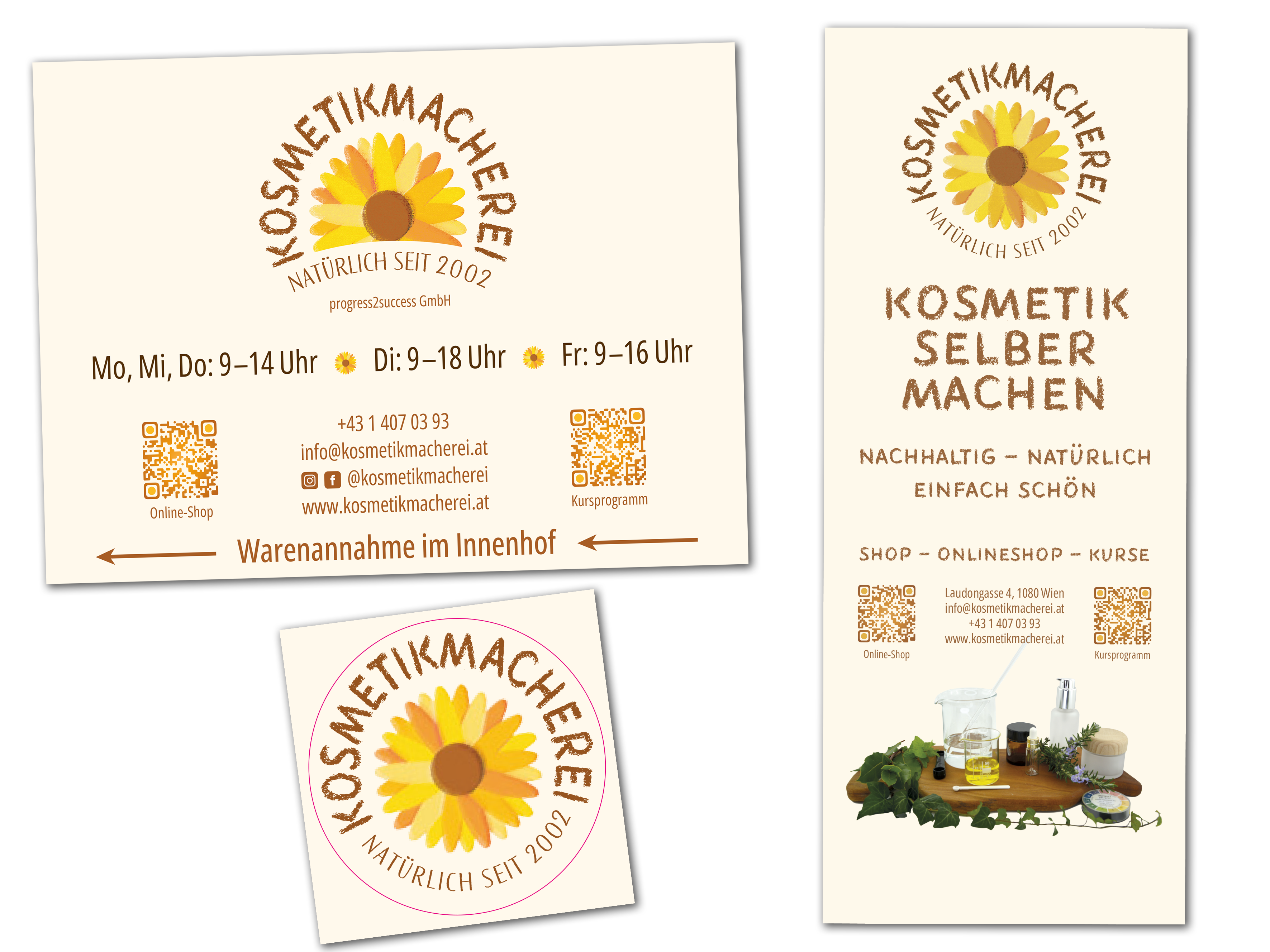 CI Weiterentwicklung, Layout und Produktion von Briefpapier, Visitkarten, Produktmappen, Ringbuch-Ordnern für Produktfolder, Etiketten, Rollups, Messewandgestaltung, Papiersackerln, Foldern, Terminblöcken, Produktkatalogen, …